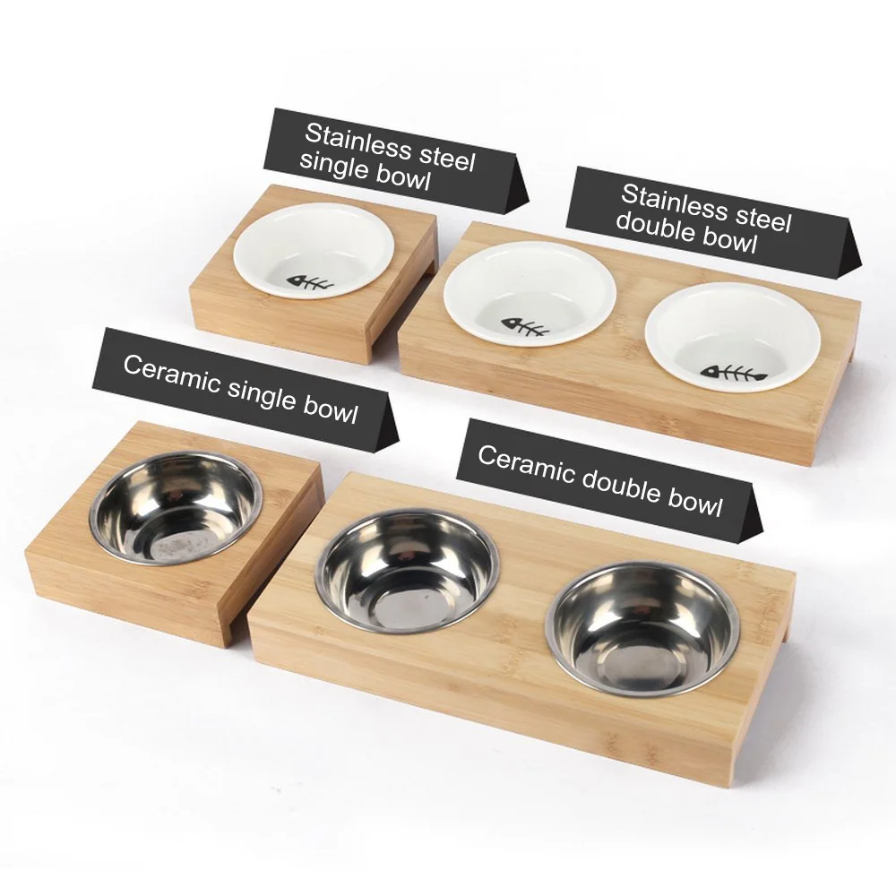 33001733848 Cheap Pet Dog Bowl fountain Pet Stainless Steel/Ceramic Feeding and Drinking Bowls Combination with Bambo
